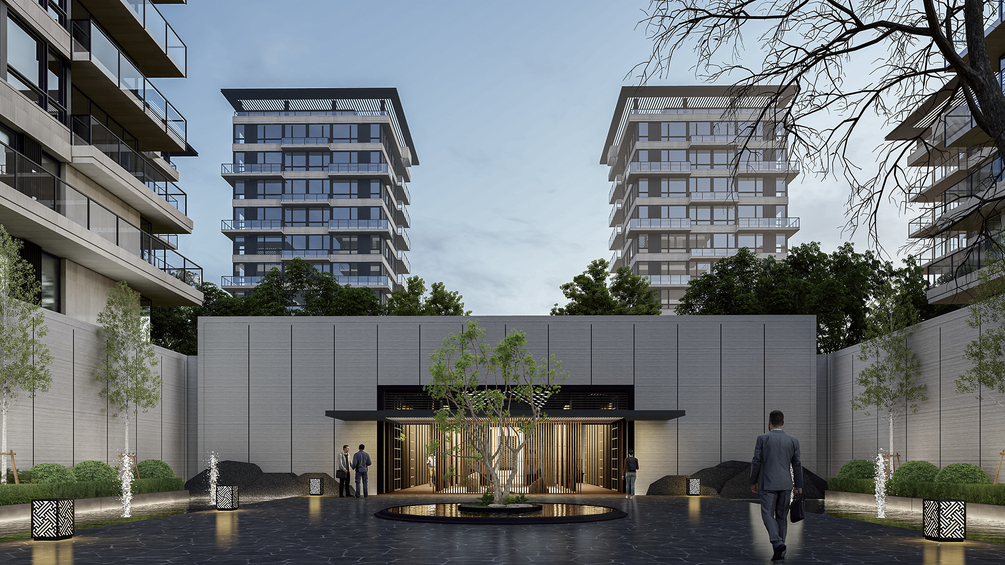 Photorealistic Exterior Commercial Sales Office Rendering in Lumion.